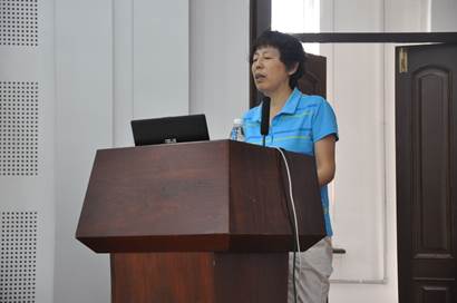 数学公共教学部主任邓华玲汇报