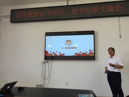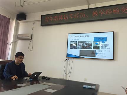 会议开始,省青年教师教学大赛第一名获得者焦扬老师做了《青教赛纪略》主题报告。焦扬老师首先向大家介绍了大赛的赛程安排和比赛规则,20个知识节点随机抽取进行比赛,体现了对教师日常教学水平最客观的评价。在两个月的赛前准备过程中,焦扬老师对教学内容、板书PPT等进行了长时间的思考,通过不断的尝试、大量的重复演练做到比赛环节精益求精。最终,焦扬老师通过赛前的努力、良好的心态、现场的优秀表现,取得了黑龙江省第四届青年教师教学比赛理科组第一名的好成绩,并将于2018年8月代表黑龙江省参加全国的教学比赛。随后焦扬老师与参会青年教师分享了他参赛的感受,他表示取得的成绩要感谢学院多年对教学的重视和持续的支持,使得公司教师具备了扎实的教学基本功,鼓励大家当一辈子老师,应该参加一次这样最正规、最高级别的教学比赛,这是对自己日常教学最好的检验和证明。数学,对于焦扬老师来说,不仅是一门学科,更是一种信仰。做最棒的数学老师,是焦扬老师愿意一生追求的事业。