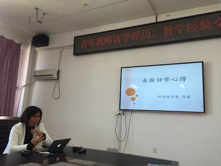 会上,在焦扬老师的报告后,2015年学校公派出国访学的白士刚老师和许晶老师分别就各自的出国学习工作经历与参会教师做了交流。白士刚老师向大家介绍了在澳大利亚莫纳什大学的学习工作情况,展示了大量的工作、生活图片,让大家有了非常直观的感受。随后许晶老师同大家分享了在美国密西西比州立大学的实验环境、工作任务、同事交往、日常生活、旅游度假等等,并表示出国访学是学校为专业教师提供的一次非常难得的学习交流机会,是一次难得的经历,留下了珍贵的回忆。