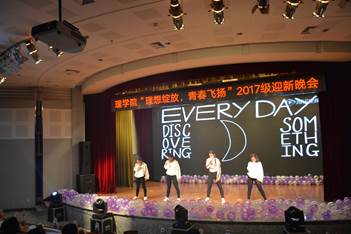 为欢迎2017级新生的到来,展现理学院莘莘学子的风采,11月12日晚六点,以“理想绽放,青春飞扬”为主题的理学院2017年迎新晚会在图书馆一楼报告厅炫目起航。