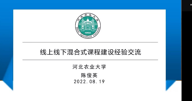 课程建设报告会于8月19日9:00在线上进行,会议邀请河北农业大学概率论与数理统计课程建设团队核心成员陈俊英副教授分享课程建设经验。该团队建设的概率论与数理统计课程被评为国家级线上线下混合式一流课程、省级精品在线开放课程、省级课程思政示范课程,此外,他们还获得首届全国高校教师教学创新大赛二等奖1项,河北省高校教师教学创新大赛二等奖1项,河北省级教学成果奖二等奖、三等奖各1项。此次报告人陈俊英副教授是河北省优秀教师,保定市师德先进个人。数学系全体教师参加了本次报告会,并在认真收看报告会后,进行了细致具体地交流讨论。报告会为新学年课程建设提供了有价值的参考与借鉴。